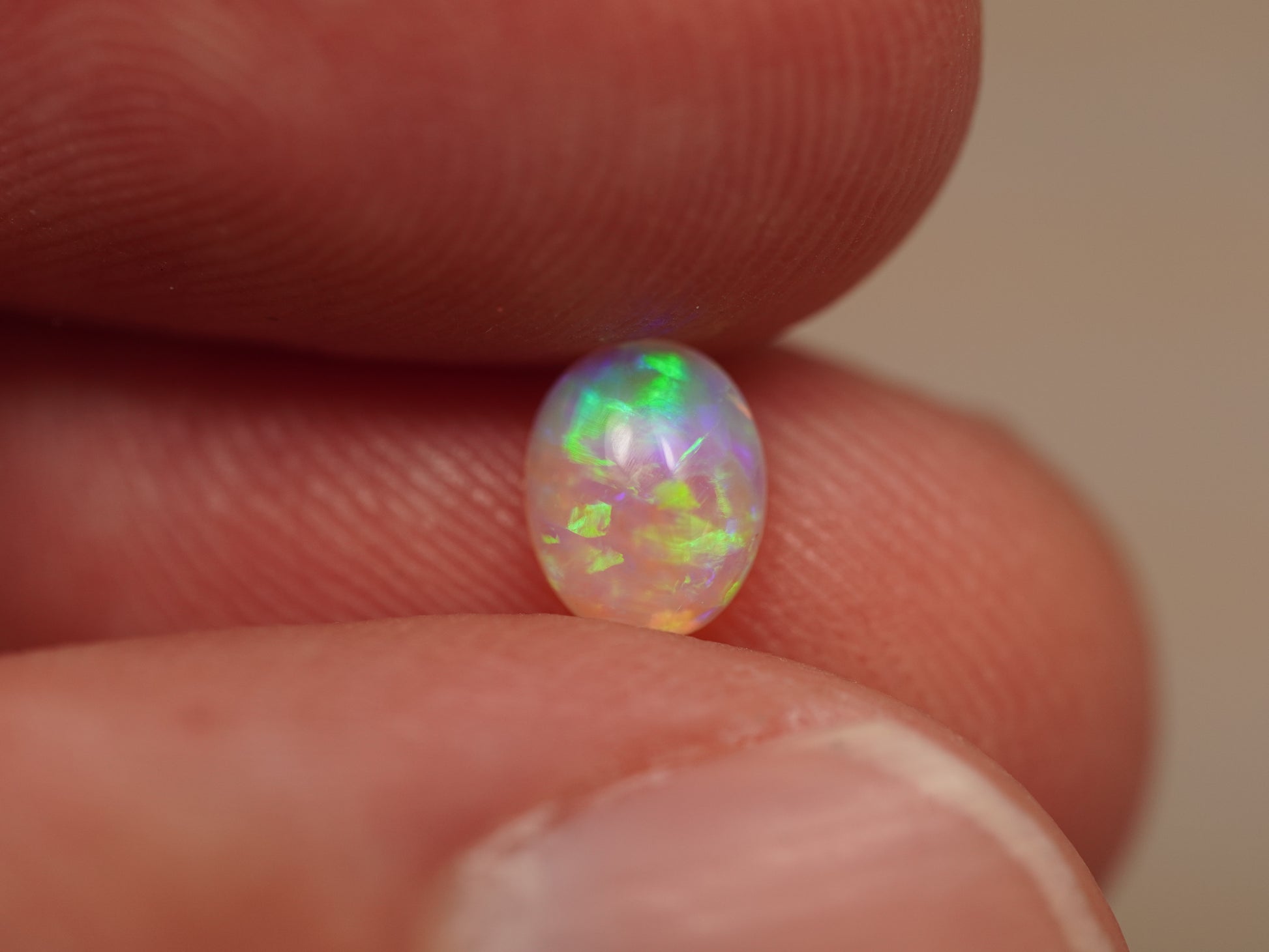 1. Die Fotos und Videos wurden unter LED-Lichtern mit 5500 Kelvin aufgenommen. Dies kommt dem natürlichen Tageslicht am nächsten und bietet eine angemessene Darstellung des Opals. Bedenken Sie, dass ein Opal unter verschiedenen Lichtquellen unterschiedlich aussehen kann.