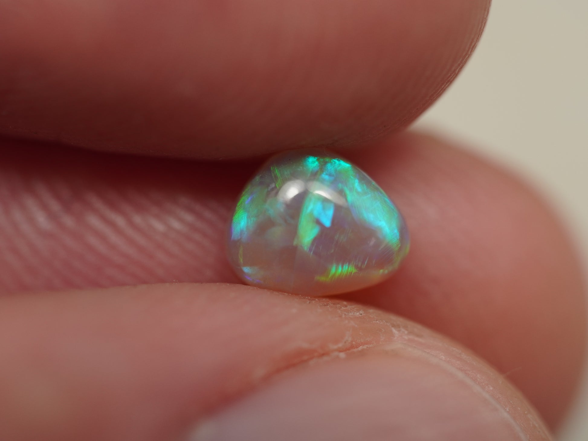 1. Die Fotos und Videos wurden unter LED-Lichtern mit 5500 Kelvin aufgenommen. Dies kommt dem natürlichen Tageslicht am nächsten und bietet eine angemessene Darstellung des Opals. Bedenken Sie, dass ein Opal unter verschiedenen Lichtquellen unterschiedlich aussehen kann.