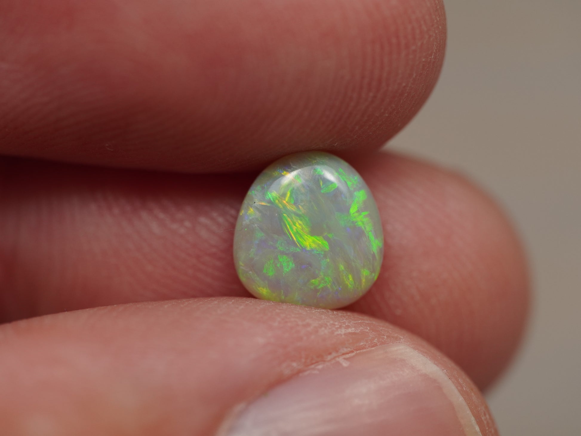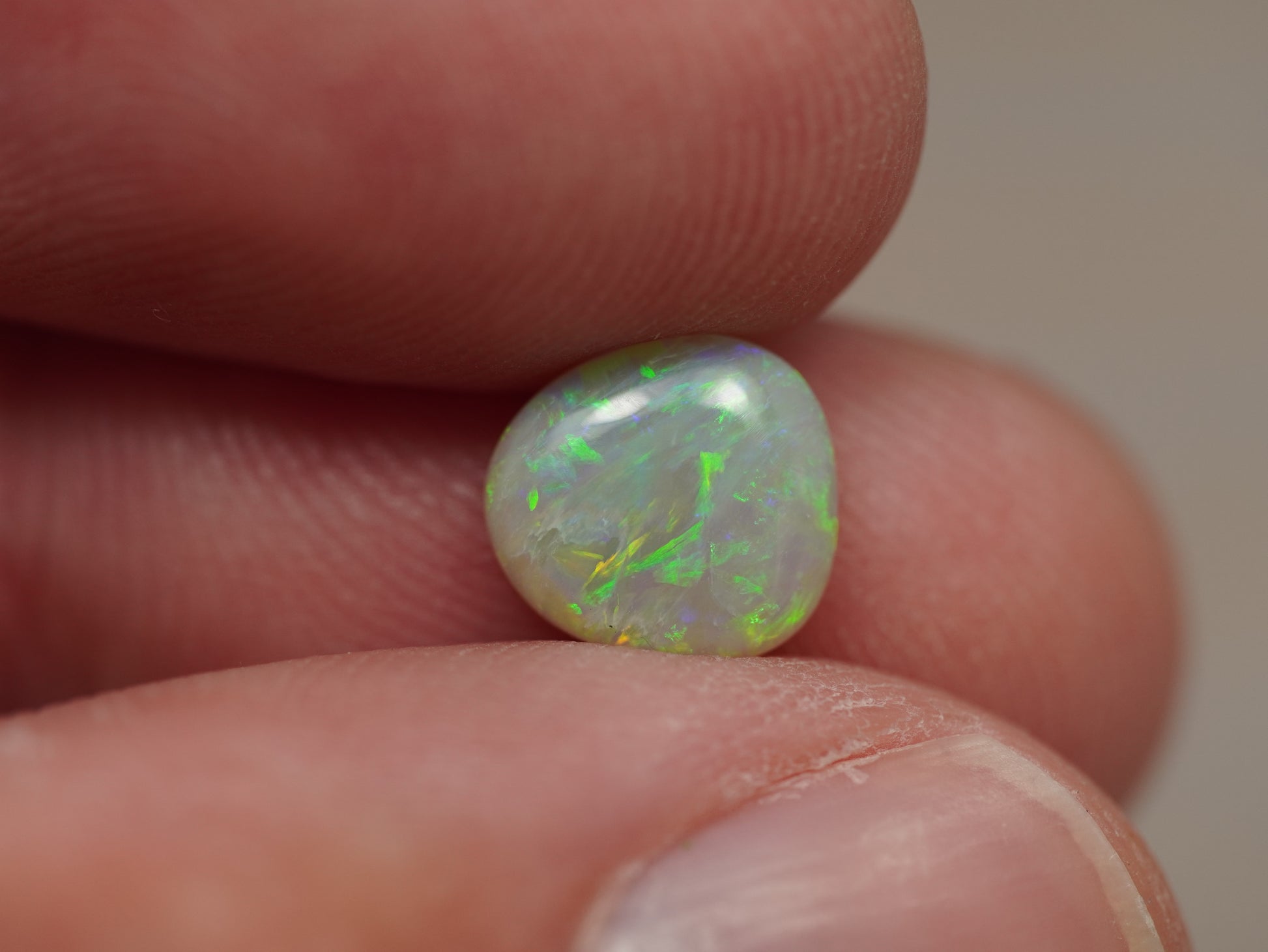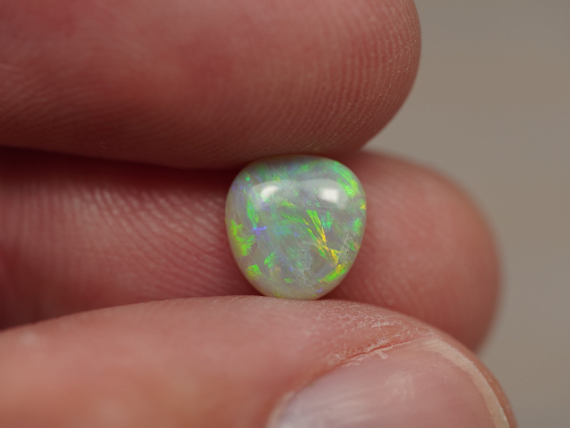 1. Die Fotos und Videos wurden unter LED-Lichtern mit 5500 Kelvin aufgenommen. Dies kommt dem natürlichen Tageslicht am nächsten und bietet eine angemessene Darstellung des Opals. Bedenken Sie, dass ein Opal unter verschiedenen Lichtquellen unterschiedlich aussehen kann.