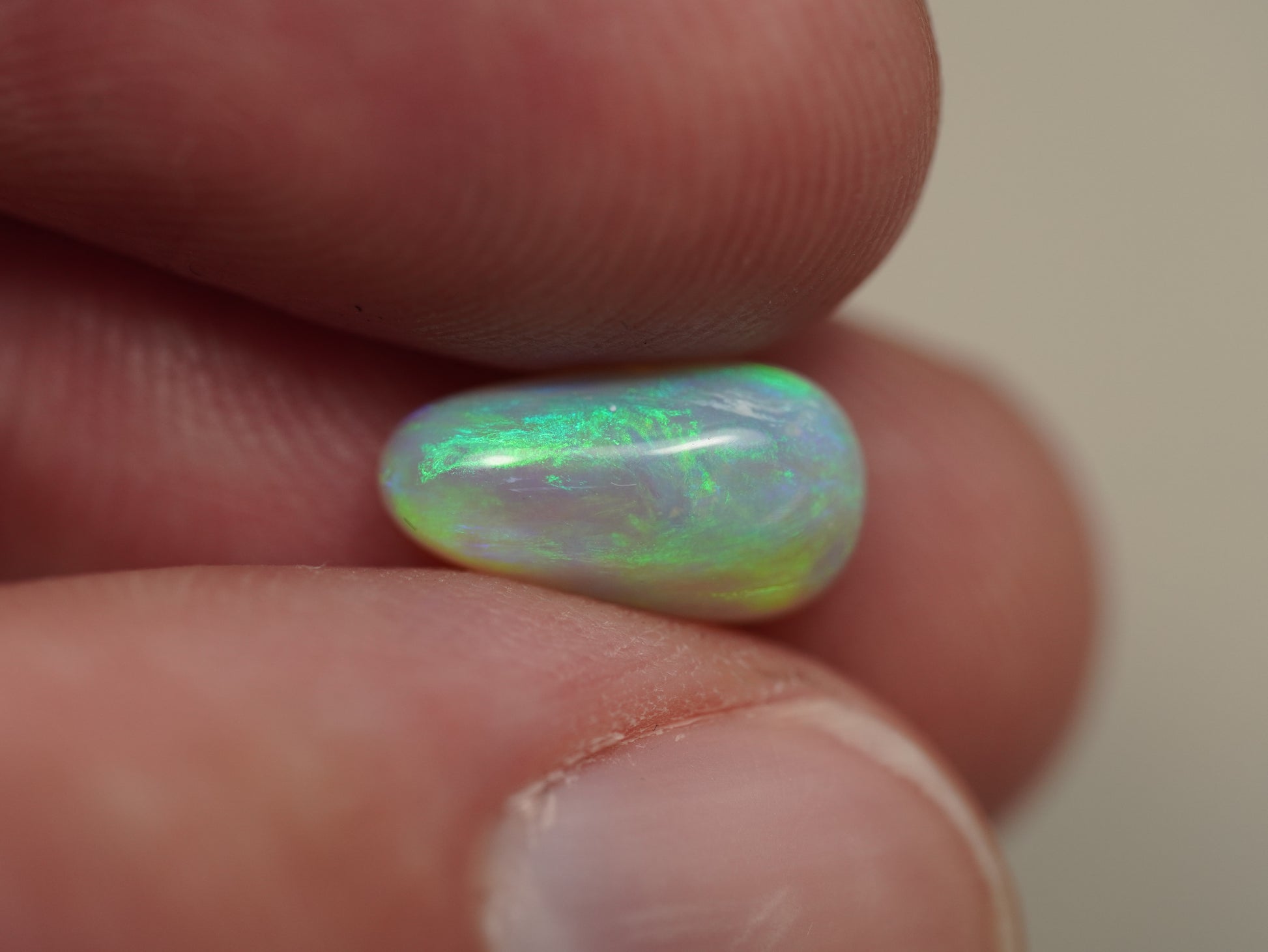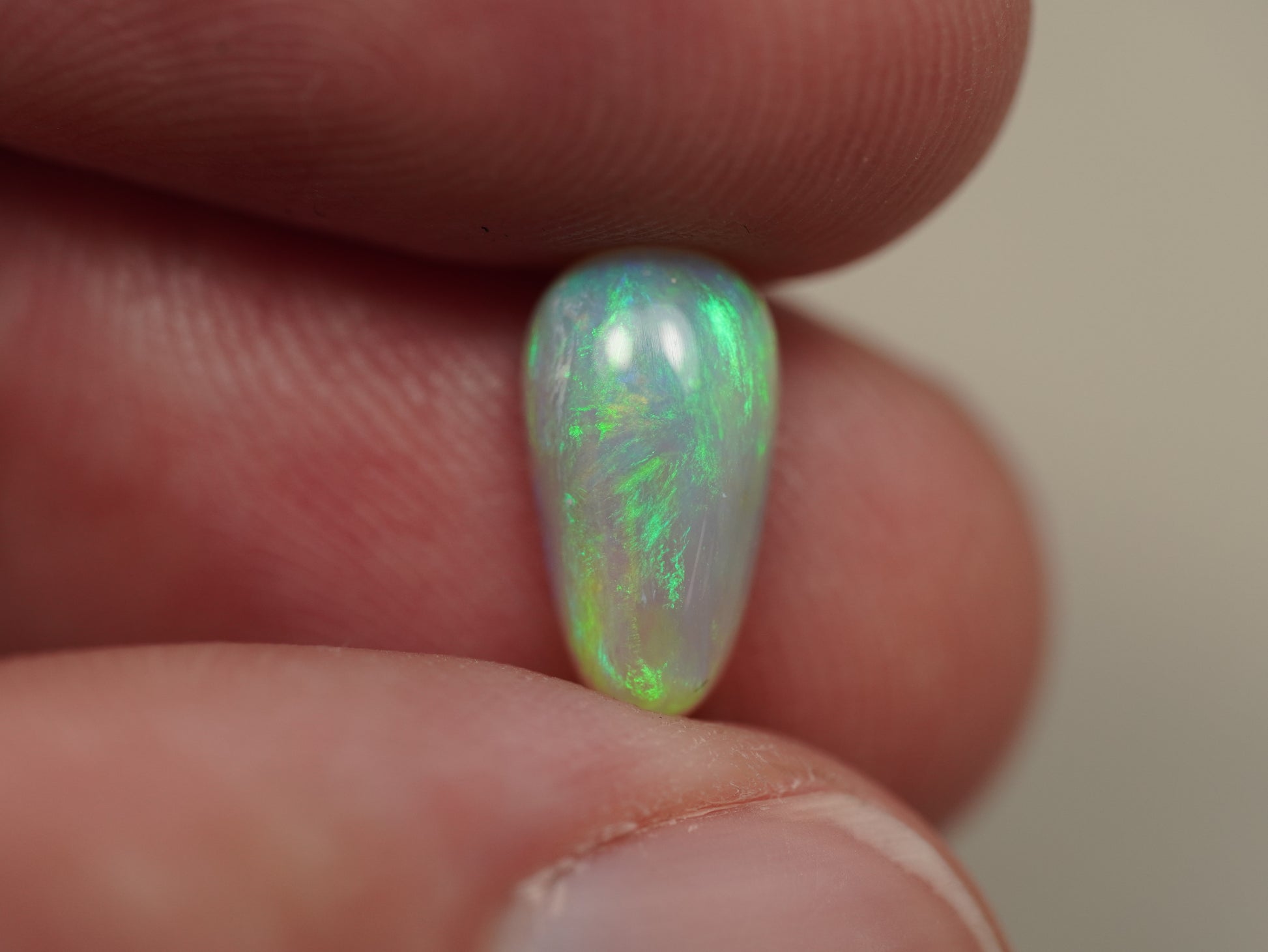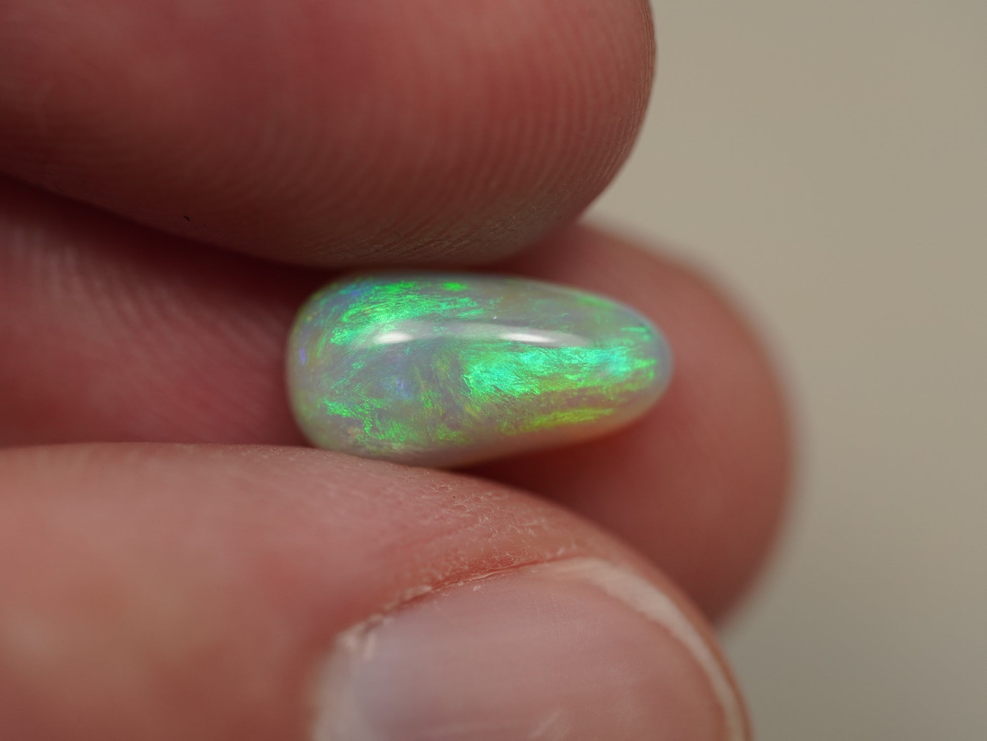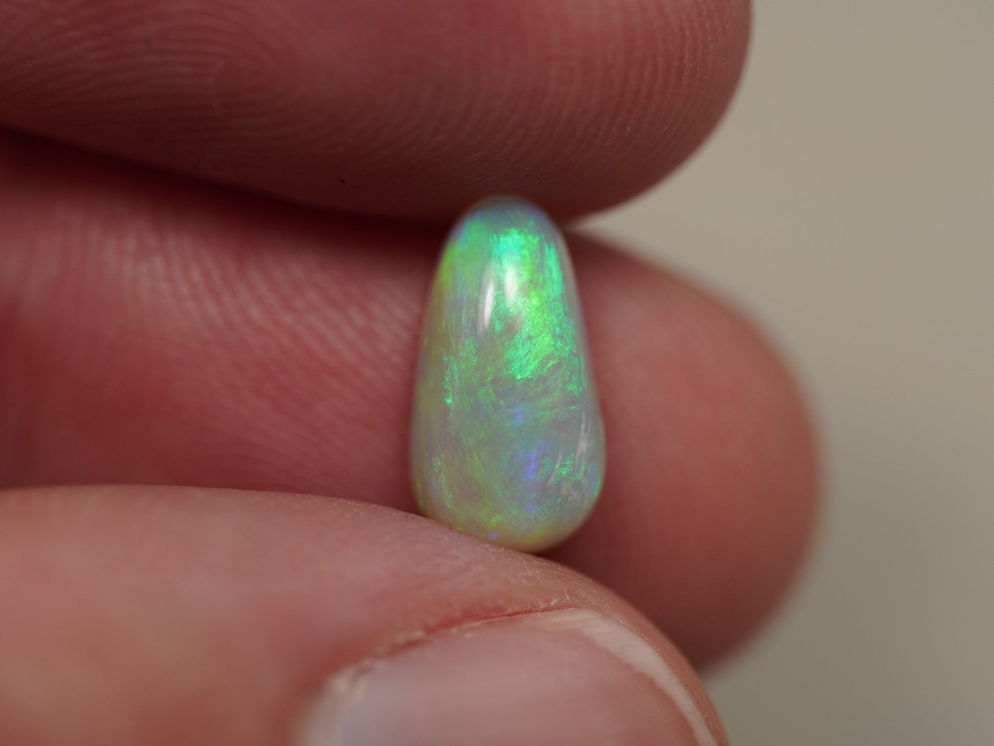 1. Die Fotos und Videos wurden unter LED-Lichtern mit 5500 Kelvin aufgenommen. Dies kommt dem natürlichen Tageslicht am nächsten und bietet eine angemessene Darstellung des Opals. Bedenken Sie, dass ein Opal unter verschiedenen Lichtquellen unterschiedlich aussehen kann.