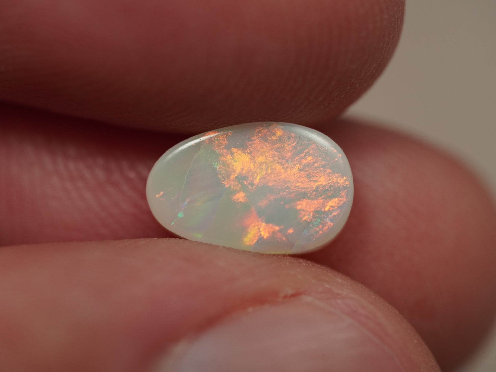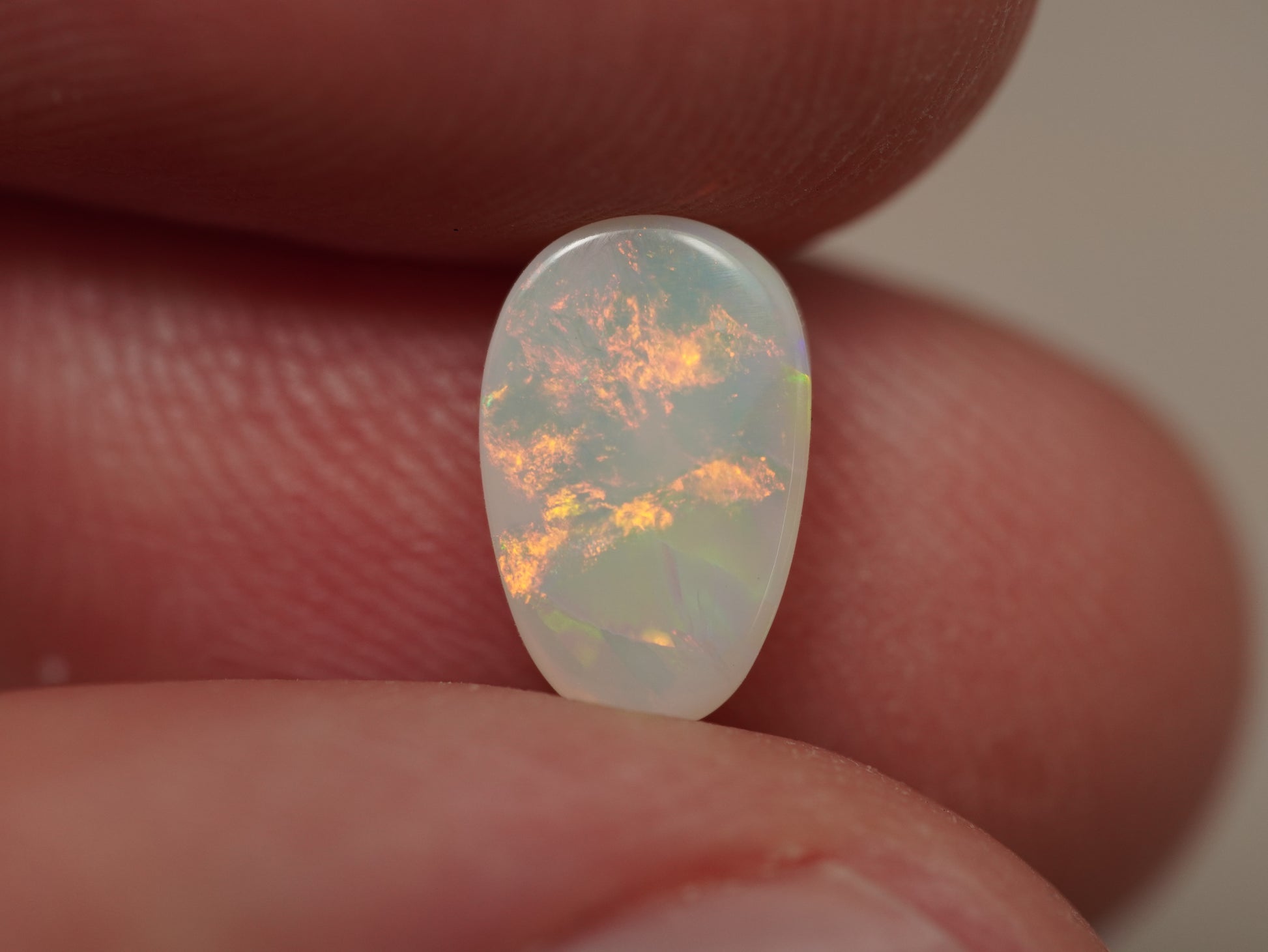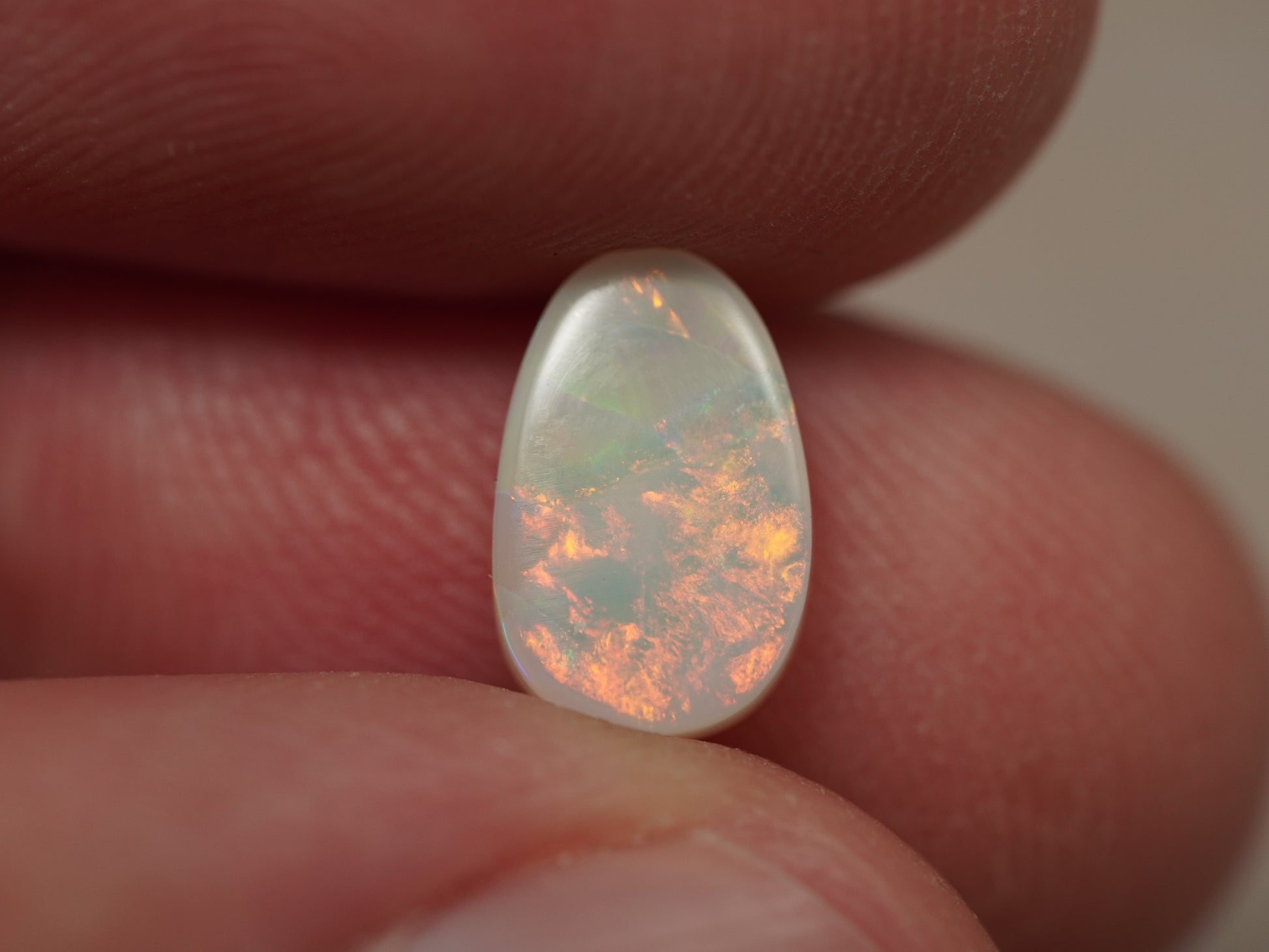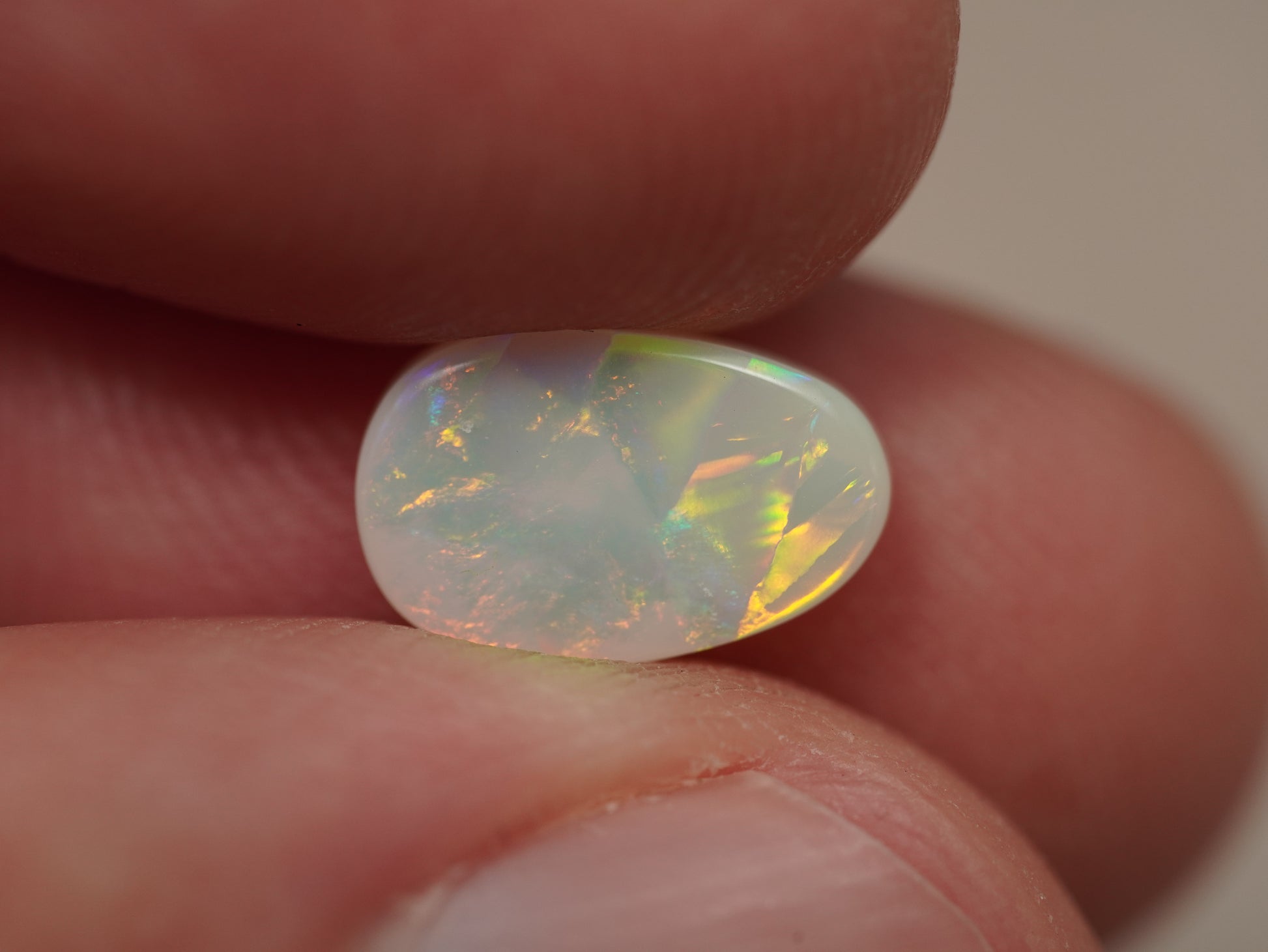 1. Die Fotos und Videos wurden unter LED-Lichtern mit 5500 Kelvin aufgenommen. Dies kommt dem natürlichen Tageslicht am nächsten und bietet eine angemessene Darstellung des Opals. Bedenken Sie, dass ein Opal unter verschiedenen Lichtquellen unterschiedlich aussehen kann.