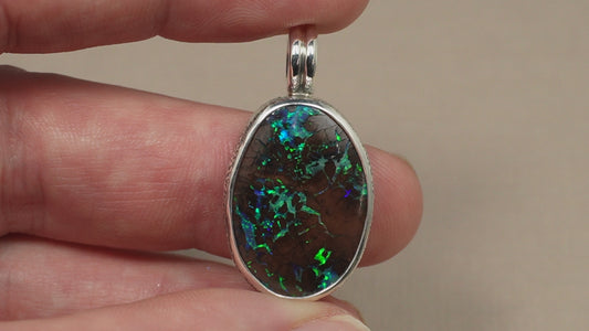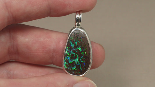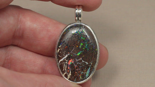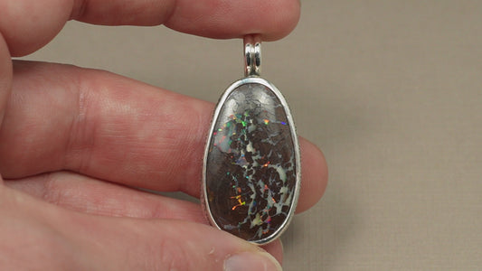 Pendentif opale foncée argent CED02