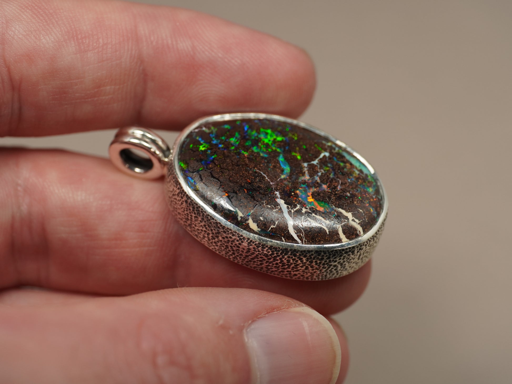 Toutes nos opales sont des opales australiennes solides. Nous ne travaillons pas avec des doublets, des triples ou des opales synthétiques. Nous avons importé toutes nos opales d'Australie et les avons nous-mêmes taillées en pierres précieuses.