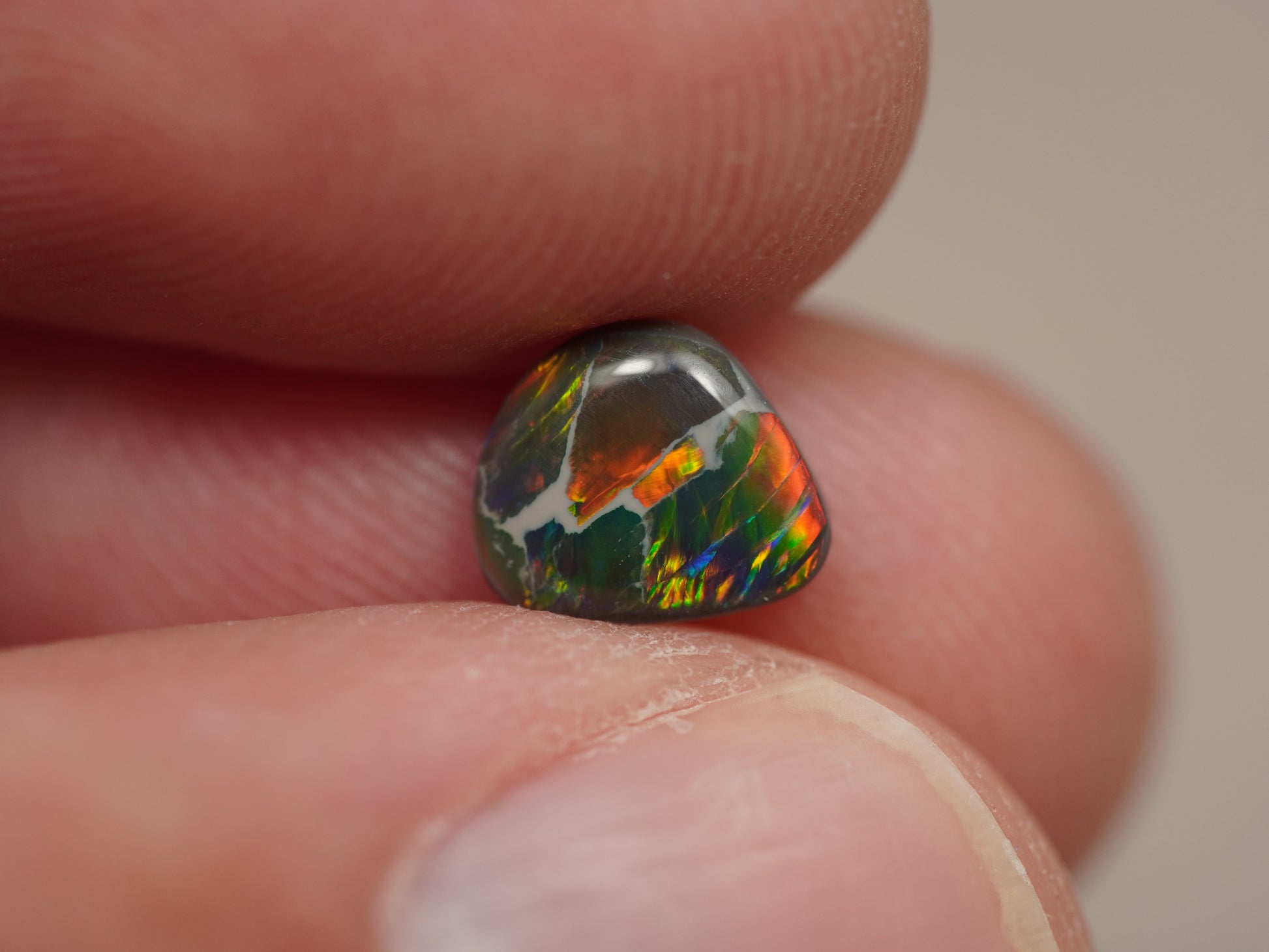 1. The photo's and video's are taken under 5500 Kelvin LED lights, this is the closest to natural daylight and gives a fair representation of the opal. Keep in mind that an opal may look different under different lightsources.