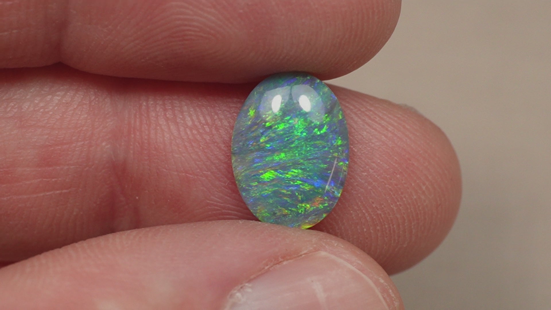 1. The photo's and video's are taken under 5500 Kelvin LED lights, this is the closest to natural daylight and gives a fair representation of the opal. Keep in mind that an opal may look different under different lightsources.