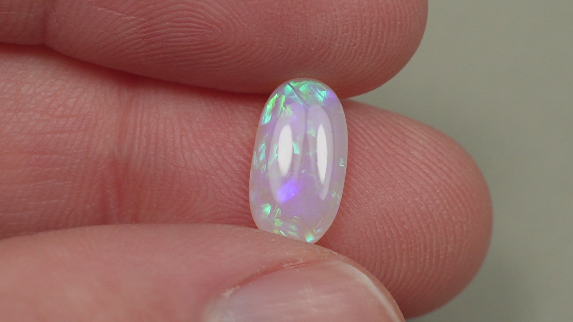 1. The photo's and video's are taken under 5500 Kelvin LED lights, this is the closest to natural daylight and gives a fair representation of the opal. Keep in mind that an opal may look different under different lightsources.
