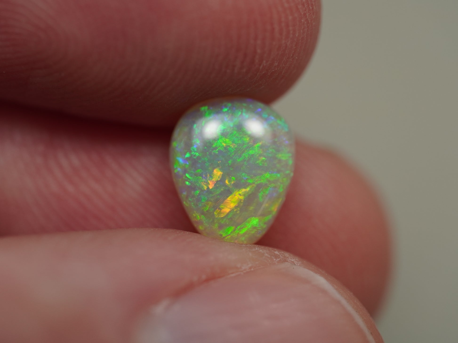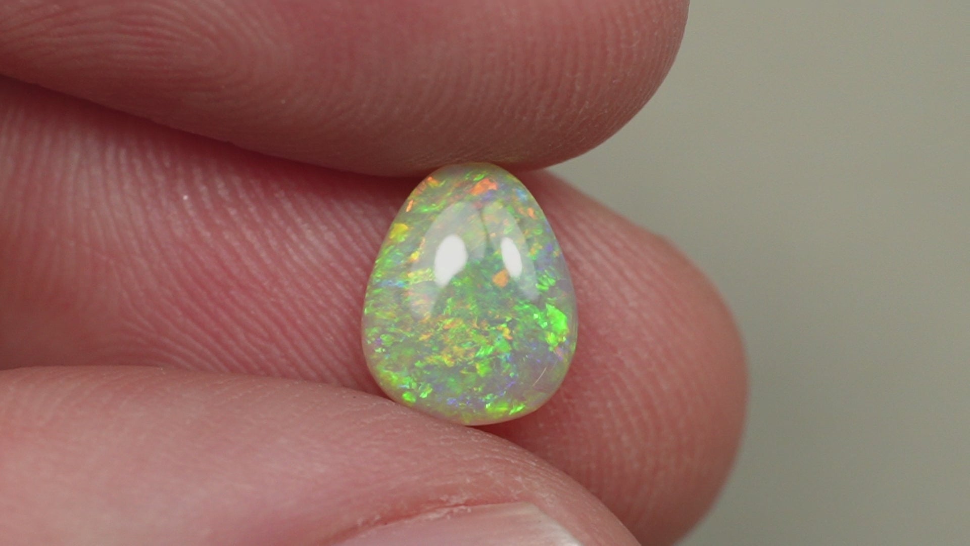 1. The photo's and video's are taken under 5500 Kelvin LED lights, this is the closest to natural daylight and gives a fair representation of the opal. Keep in mind that an opal may look different under different lightsources.