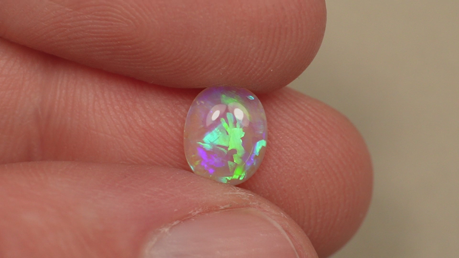 1. The photo's and video's are taken under 5500 Kelvin LED lights, this is the closest to natural daylight and gives a fair representation of the opal. Keep in mind that an opal may look different under different lightsources.