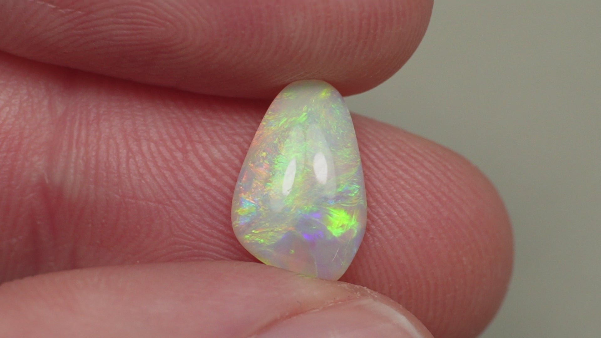 1. The photo's and video's are taken under 5500 Kelvin LED lights, this is the closest to natural daylight and gives a fair representation of the opal. Keep in mind that an opal may look different under different lightsources.
