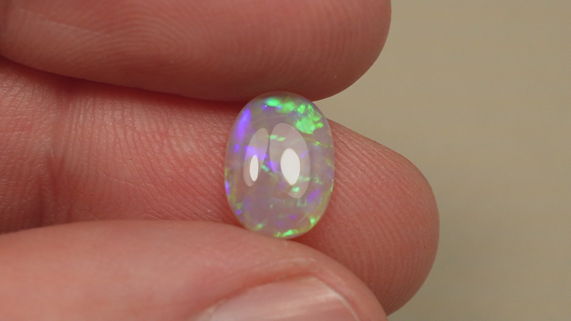 1. The photo's and video's are taken under 5500 Kelvin LED lights, this is the closest to natural daylight and gives a fair representation of the opal. Keep in mind that an opal may look different under different lightsources.