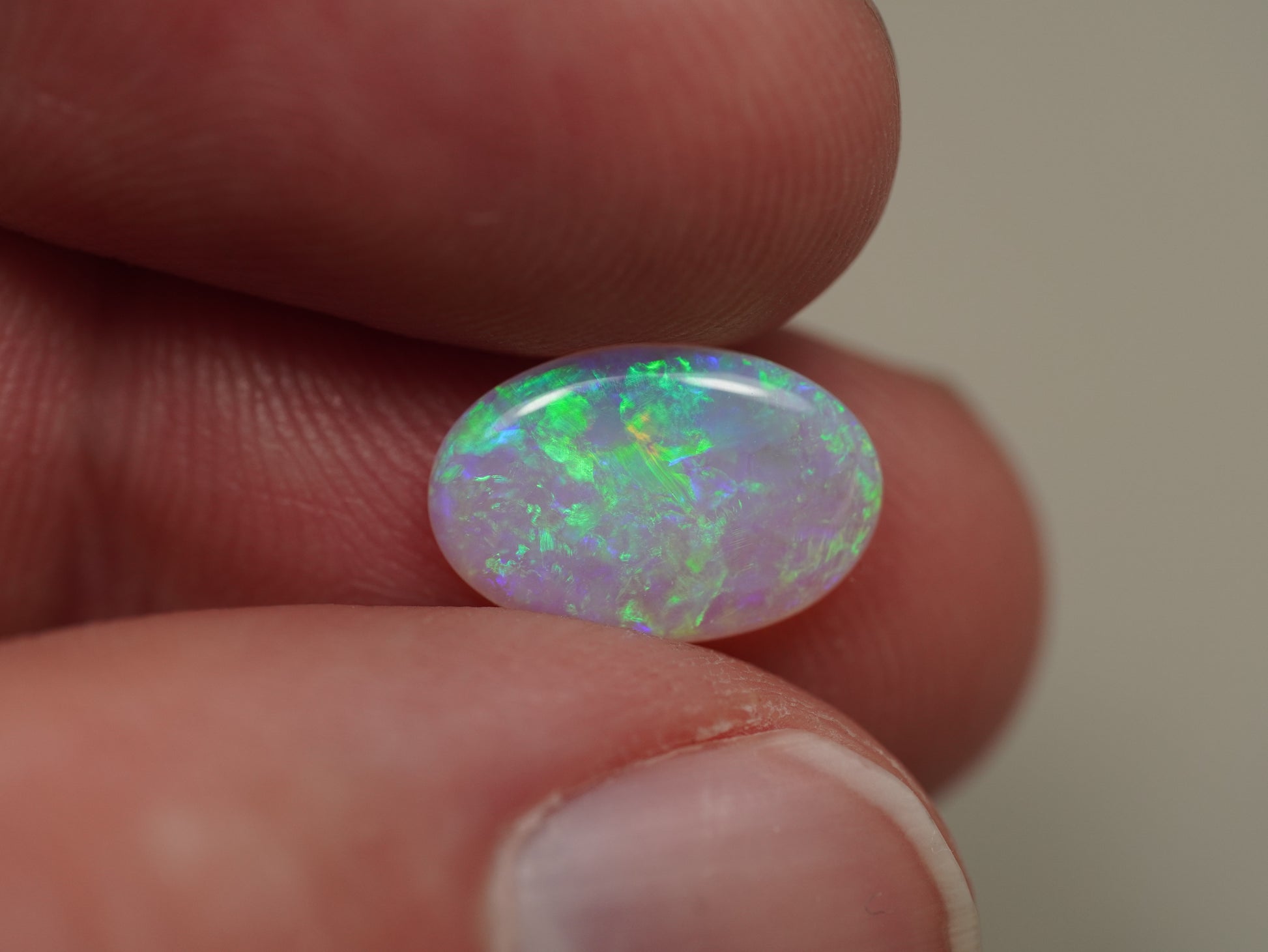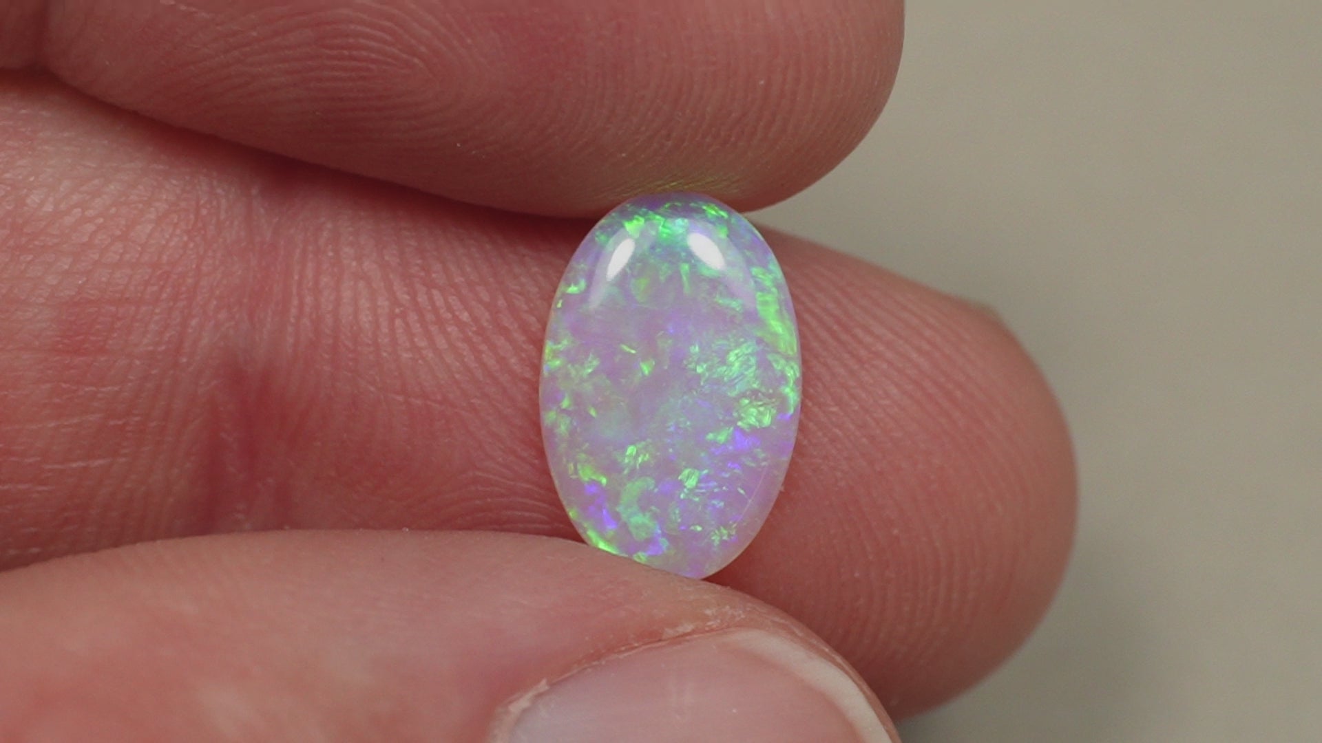 1. The photo's and video's are taken under 5500 Kelvin LED lights, this is the closest to natural daylight and gives a fair representation of the opal. Keep in mind that an opal may look different under different lightsources.
