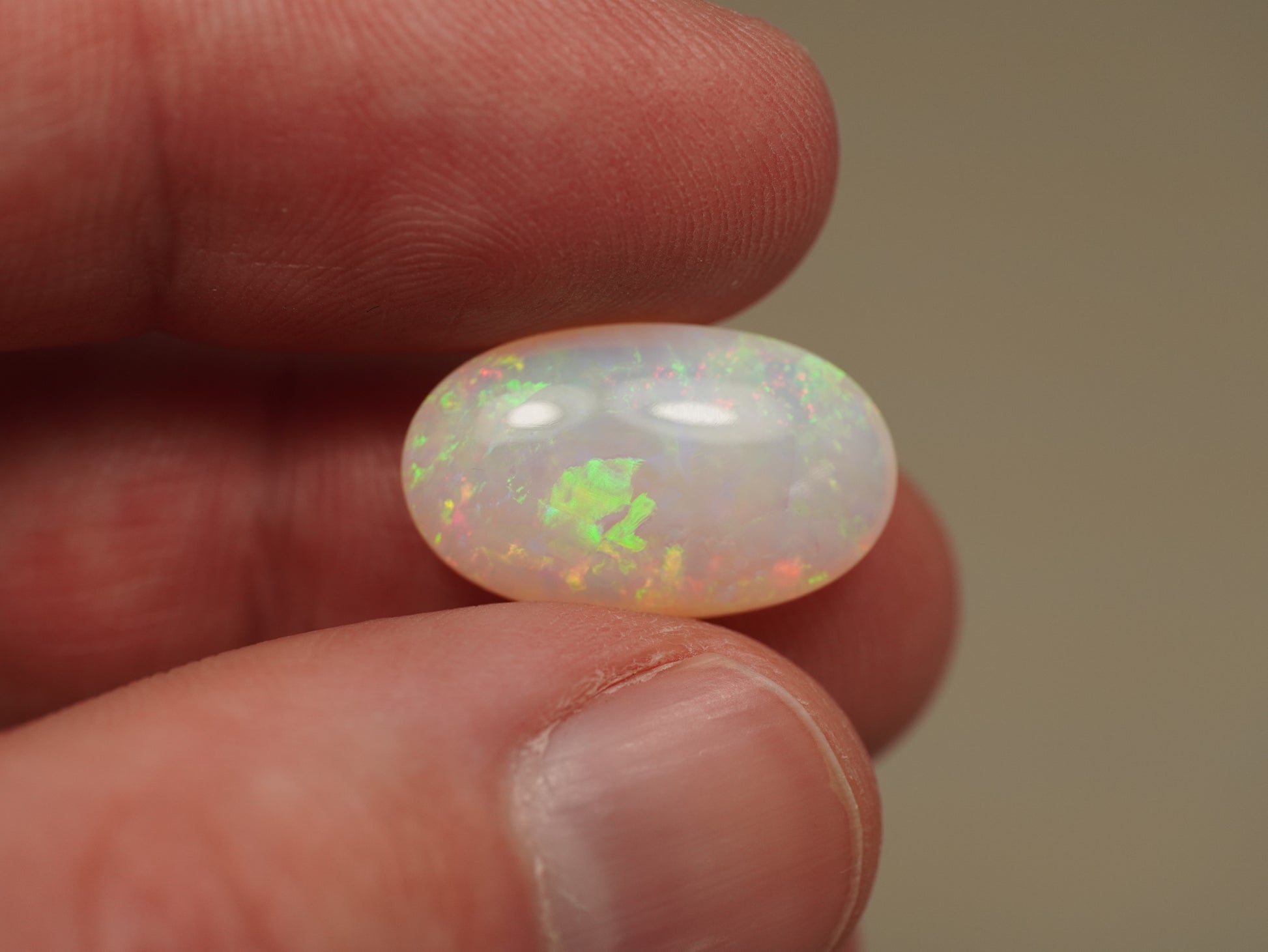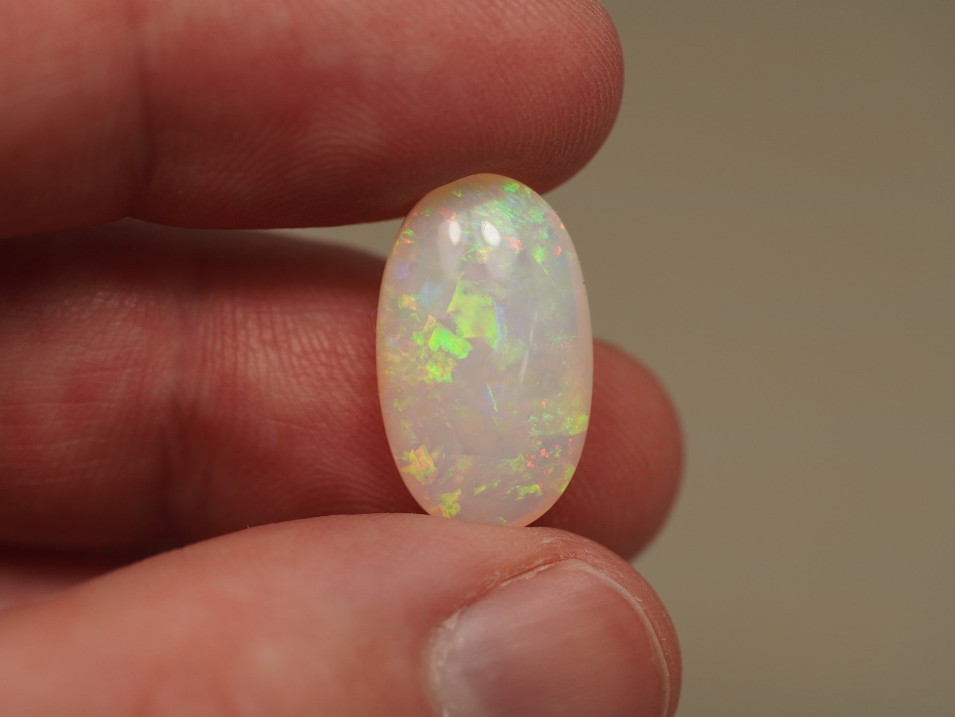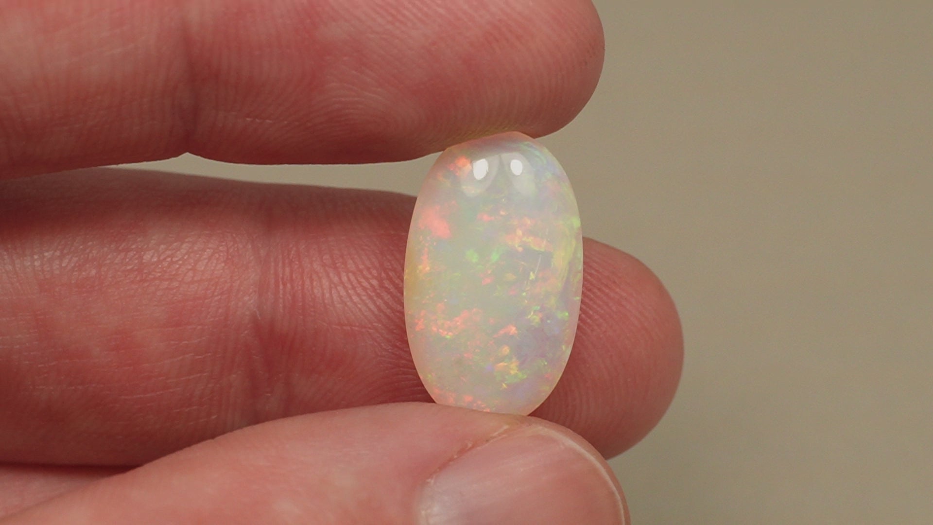 1. The photo's and video's are taken under 5500 Kelvin LED lights, this is the closest to natural daylight and gives a fair representation of the opal. Keep in mind that an opal may look different under different lightsources.