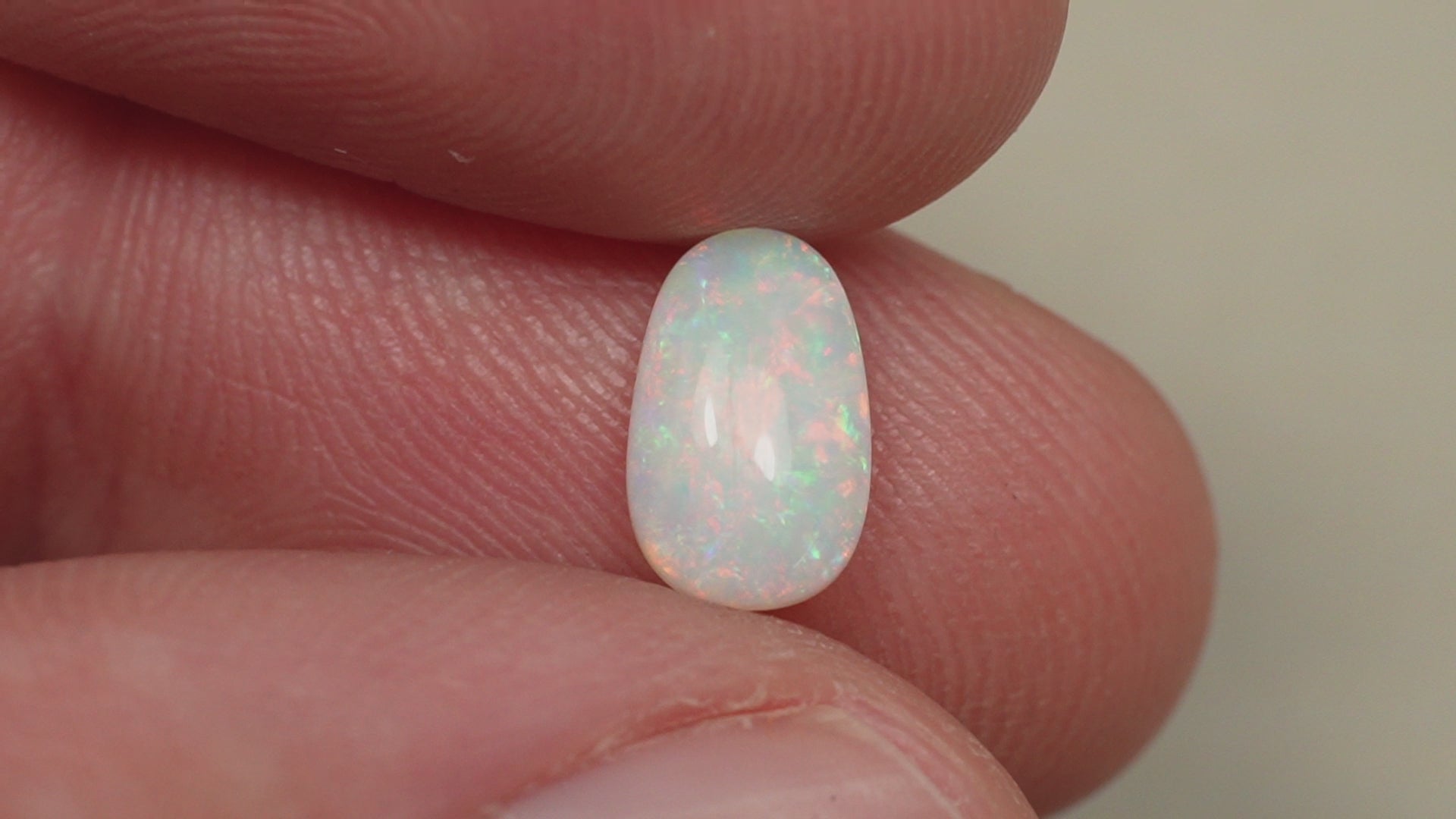 1. The photo's and video's are taken under 5500 Kelvin LED lights, this is the closest to natural daylight and gives a fair representation of the opal. Keep in mind that an opal may look different under different lightsources.
