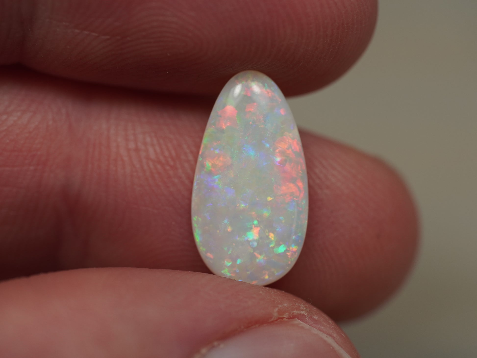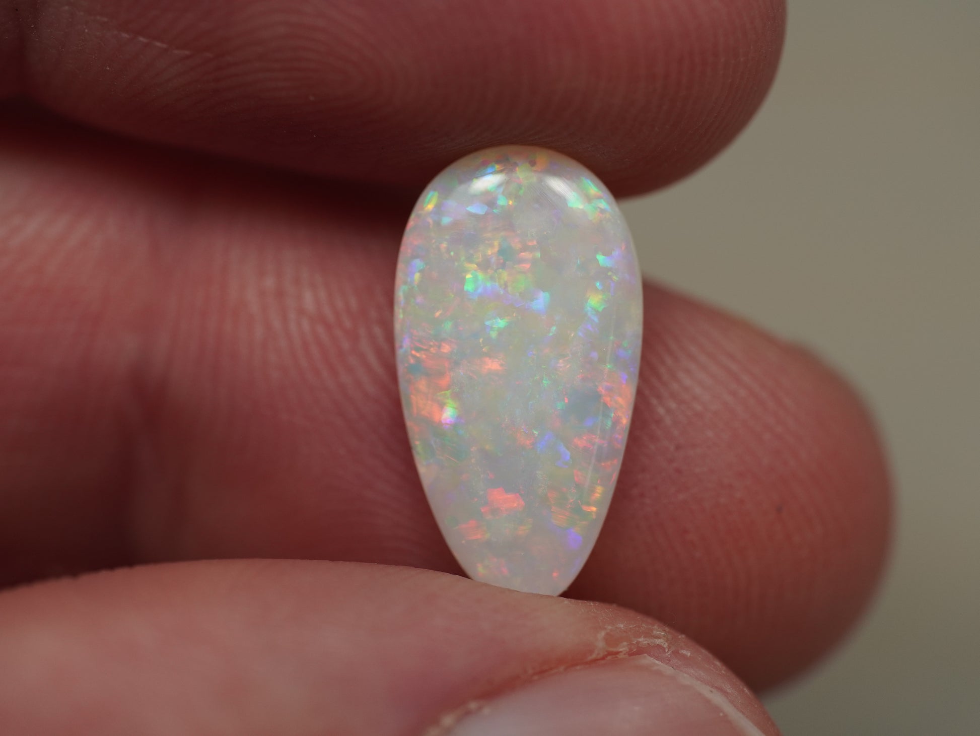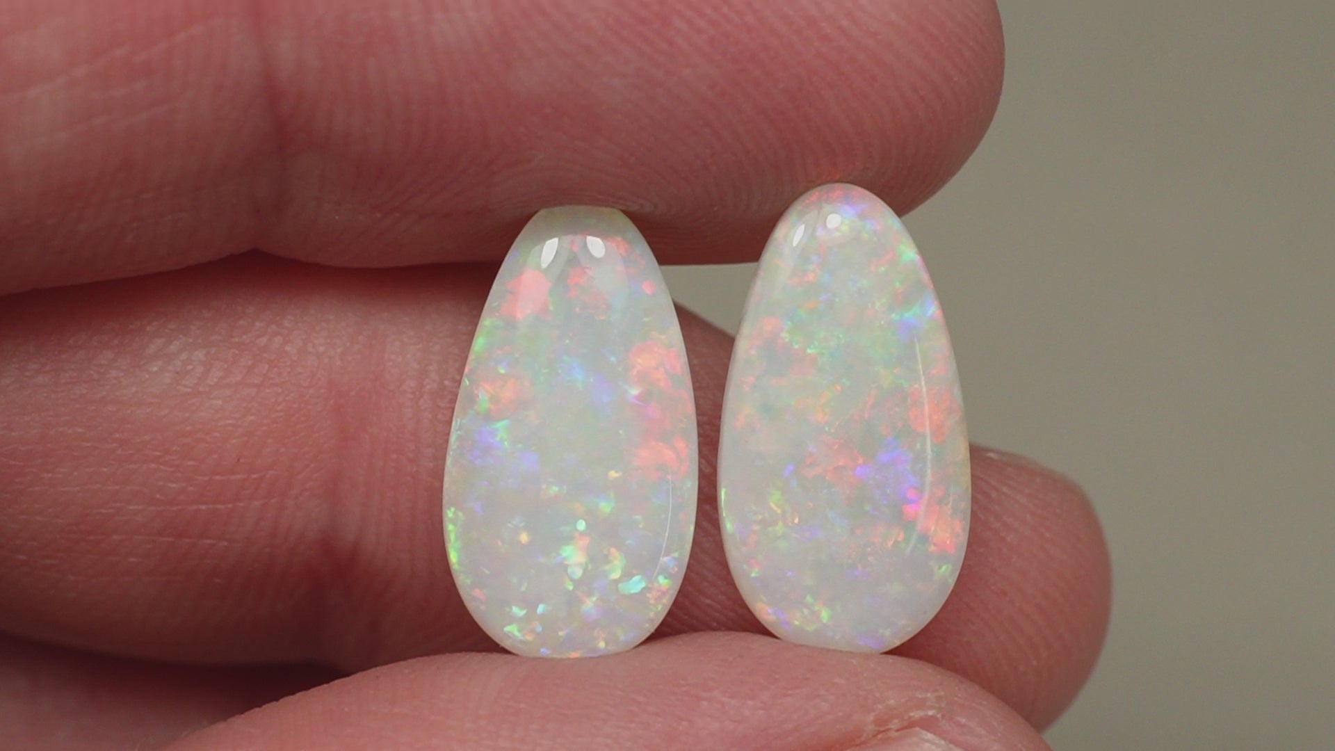 1. The photo's and video's are taken under 5500 Kelvin LED lights, this is the closest to natural daylight and gives a fair representation of the opal. Keep in mind that an opal may look different under different lightsources.