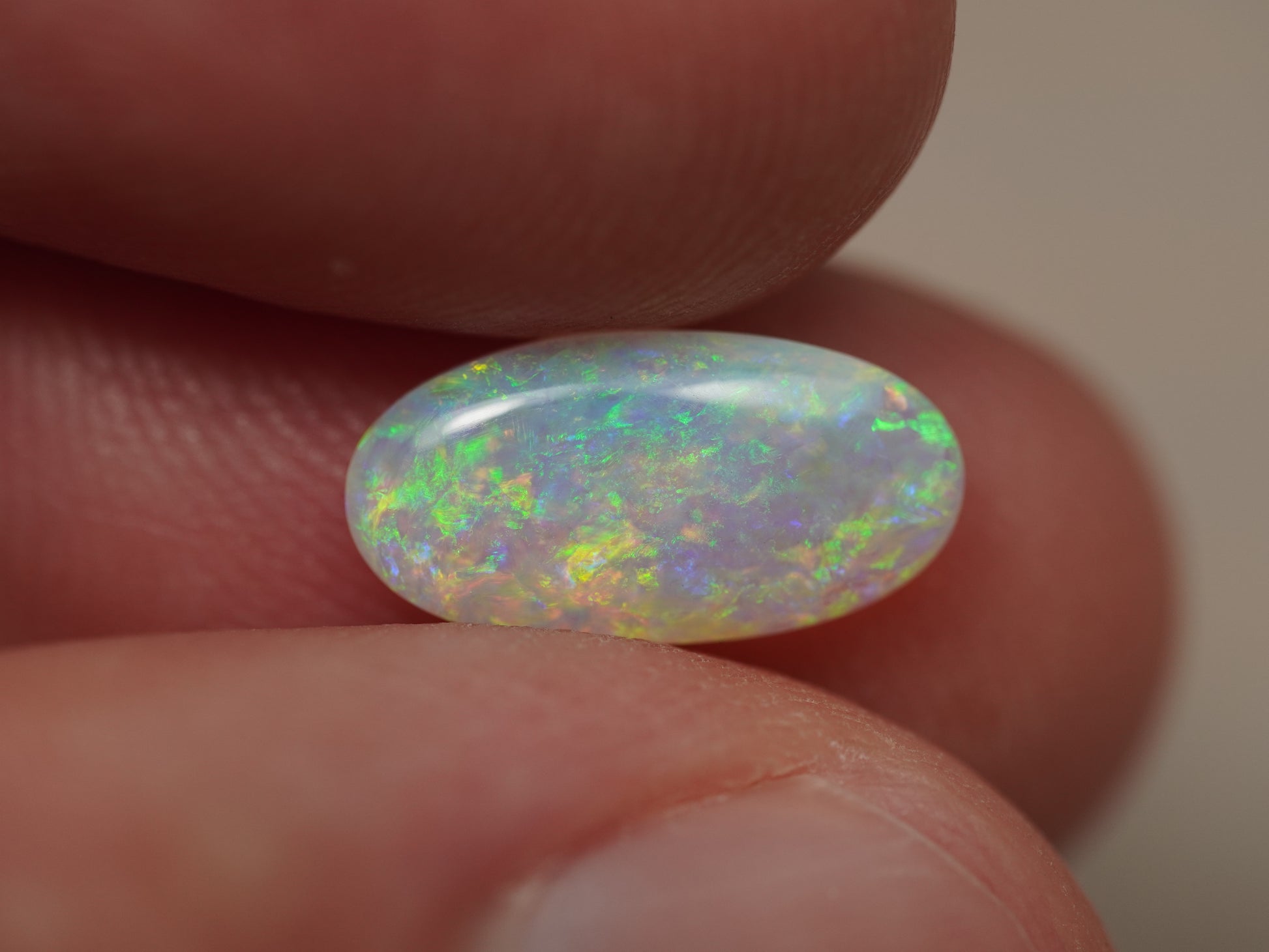 1. The photo's and video's are taken under 5500 Kelvin LED lights, this is the closest to natural daylight and gives a fair representation of the opal. Keep in mind that an opal may look different under different lightsources.