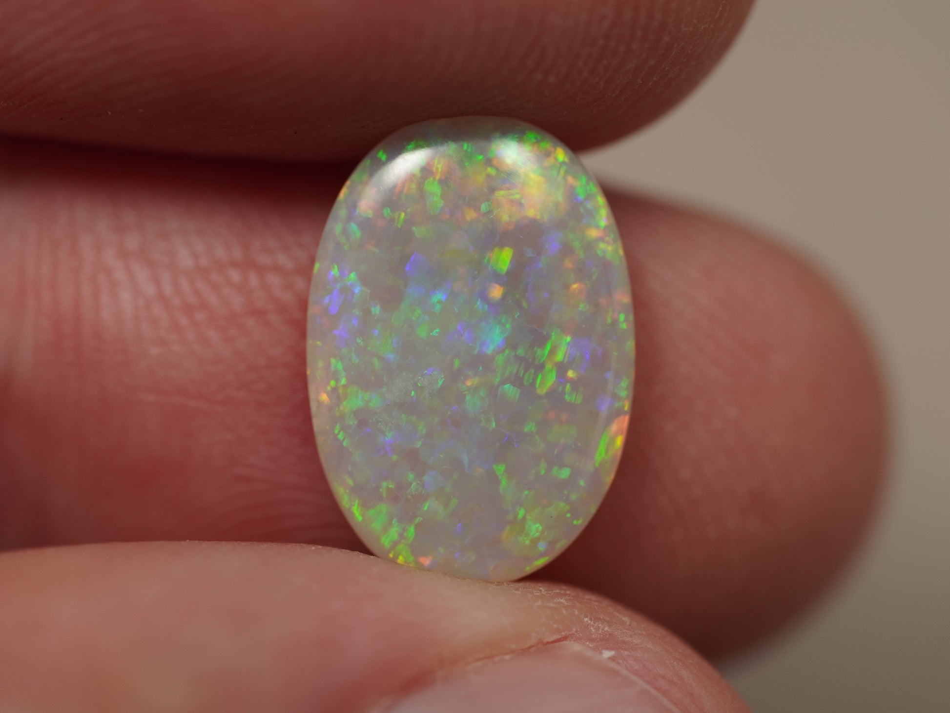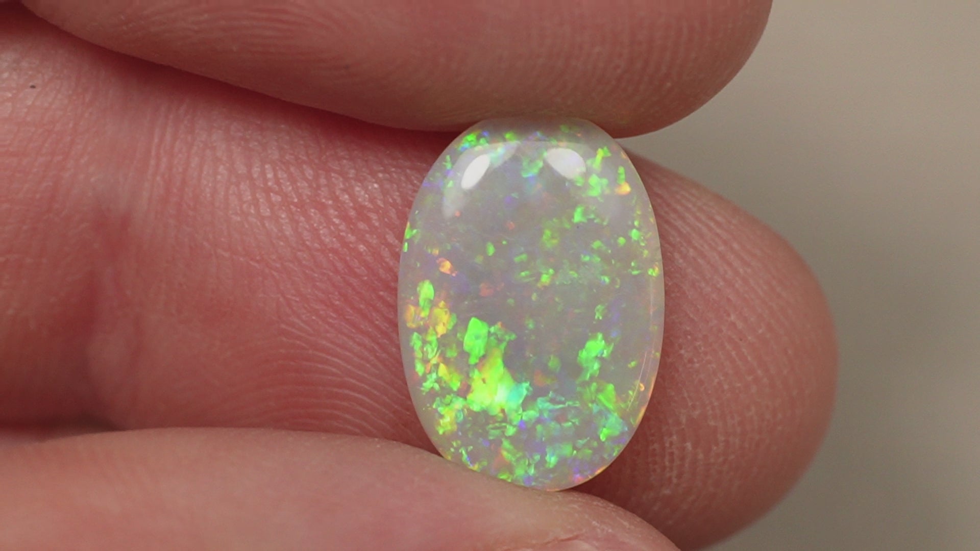1. The photo's and video's are taken under 5500 Kelvin LED lights, this is the closest to natural daylight and gives a fair representation of the opal. Keep in mind that an opal may look different under different lightsources.