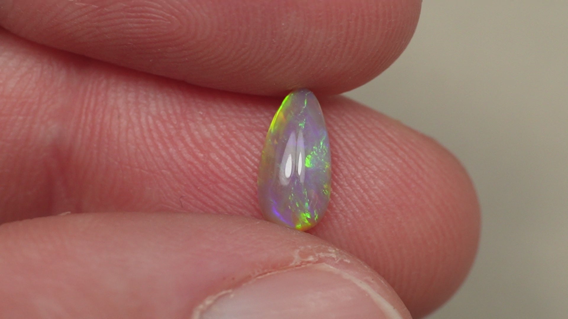1. The photo's and video's are taken under 5500 Kelvin LED lights, this is the closest to natural daylight and gives a fair representation of the opal. Keep in mind that an opal may look different under different lightsources.