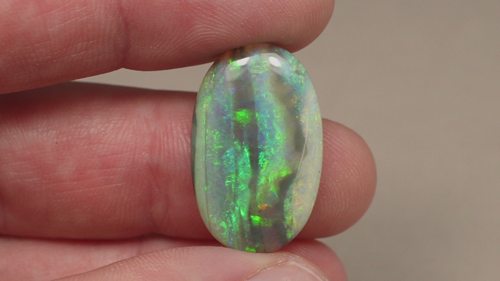 1. The photo's and video's are taken under 5500 Kelvin LED lights, this is the closest to natural daylight and gives a fair representation of the opal. Keep in mind that an opal may look different under different lightsources.