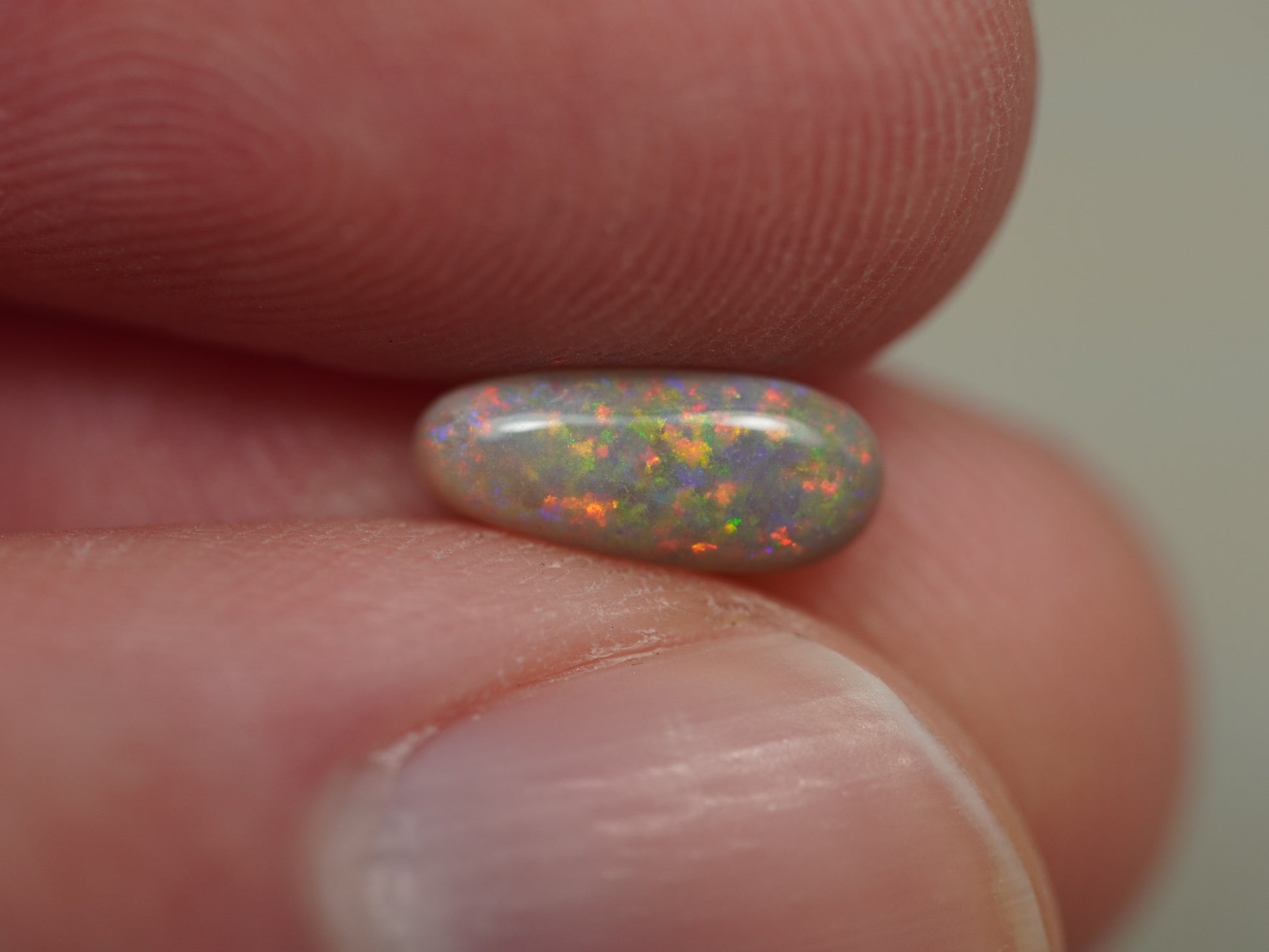 1. The photo's and video's are taken under 5500 Kelvin LED lights, this is the closest to natural daylight and gives a fair representation of the opal. Keep in mind that an opal may look different under different lightsources.