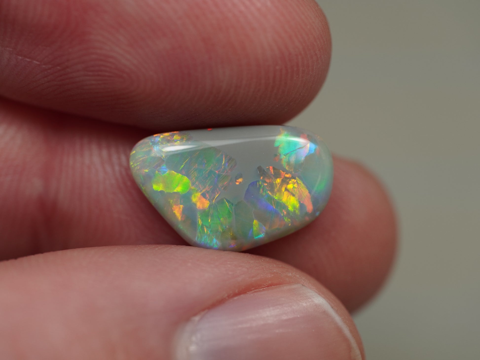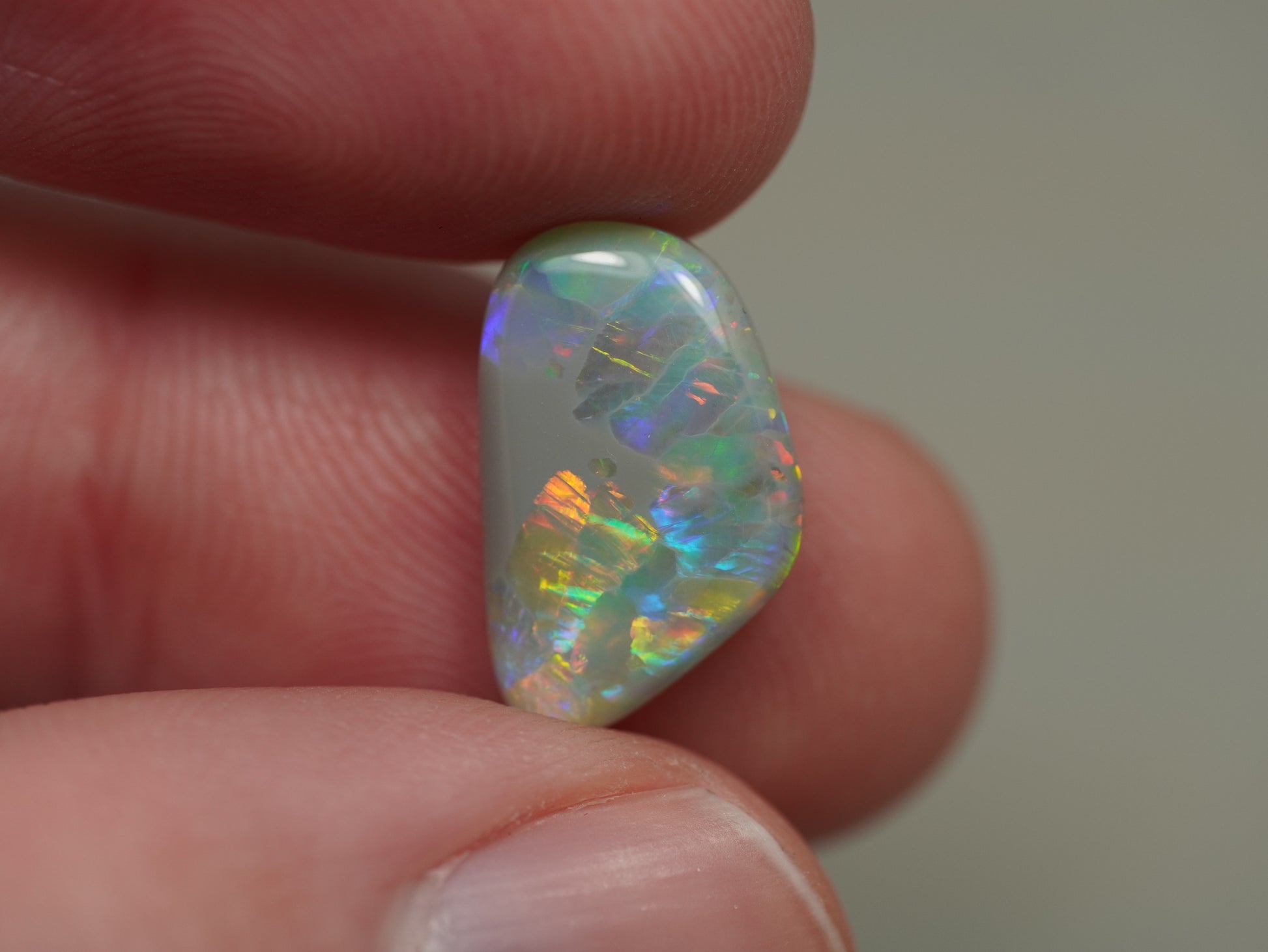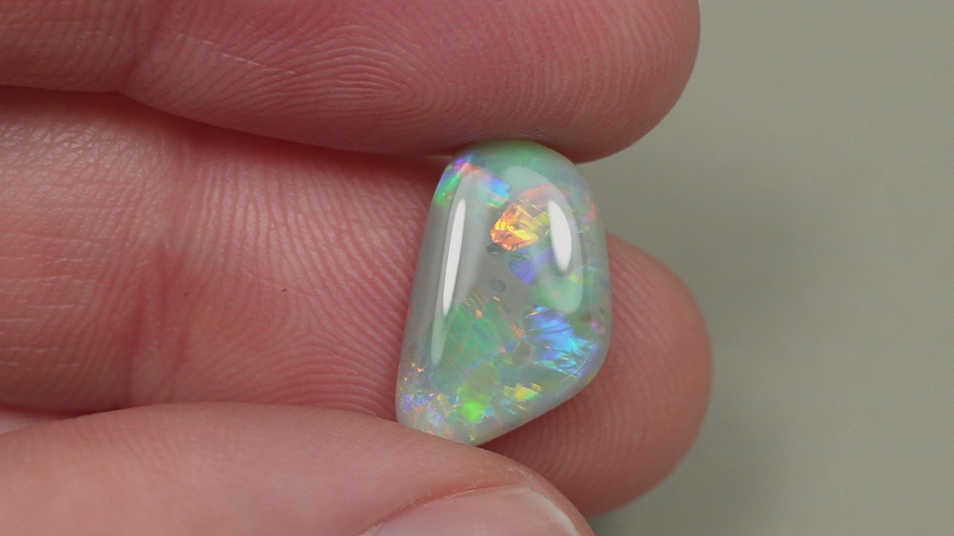 1. The photo's and video's are taken under 5500 Kelvin LED lights, this is the closest to natural daylight and gives a fair representation of the opal. Keep in mind that an opal may look different under different lightsources.