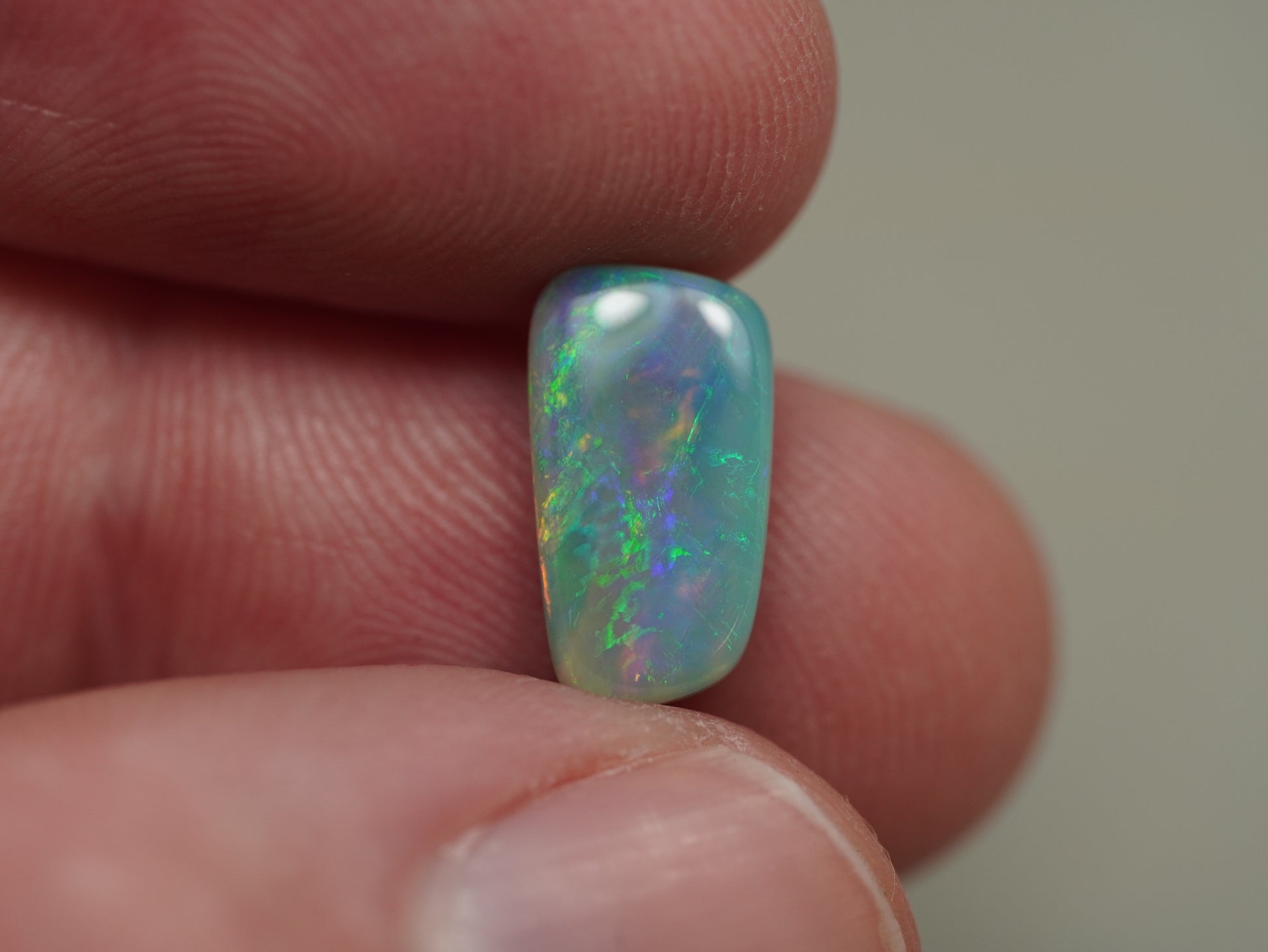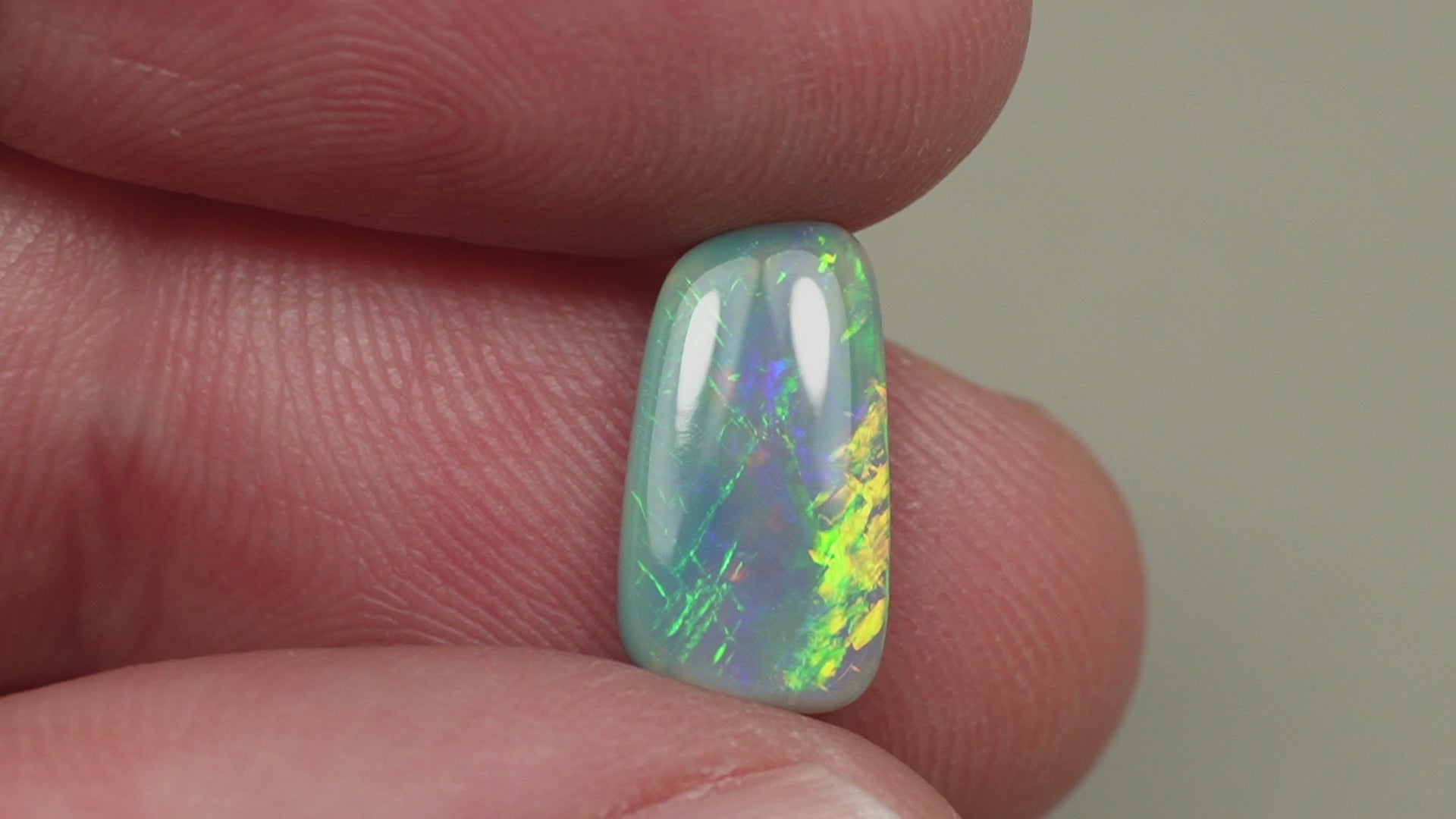 1. The photo's and video's are taken under 5500 Kelvin LED lights, this is the closest to natural daylight and gives a fair representation of the opal. Keep in mind that an opal may look different under different lightsources.