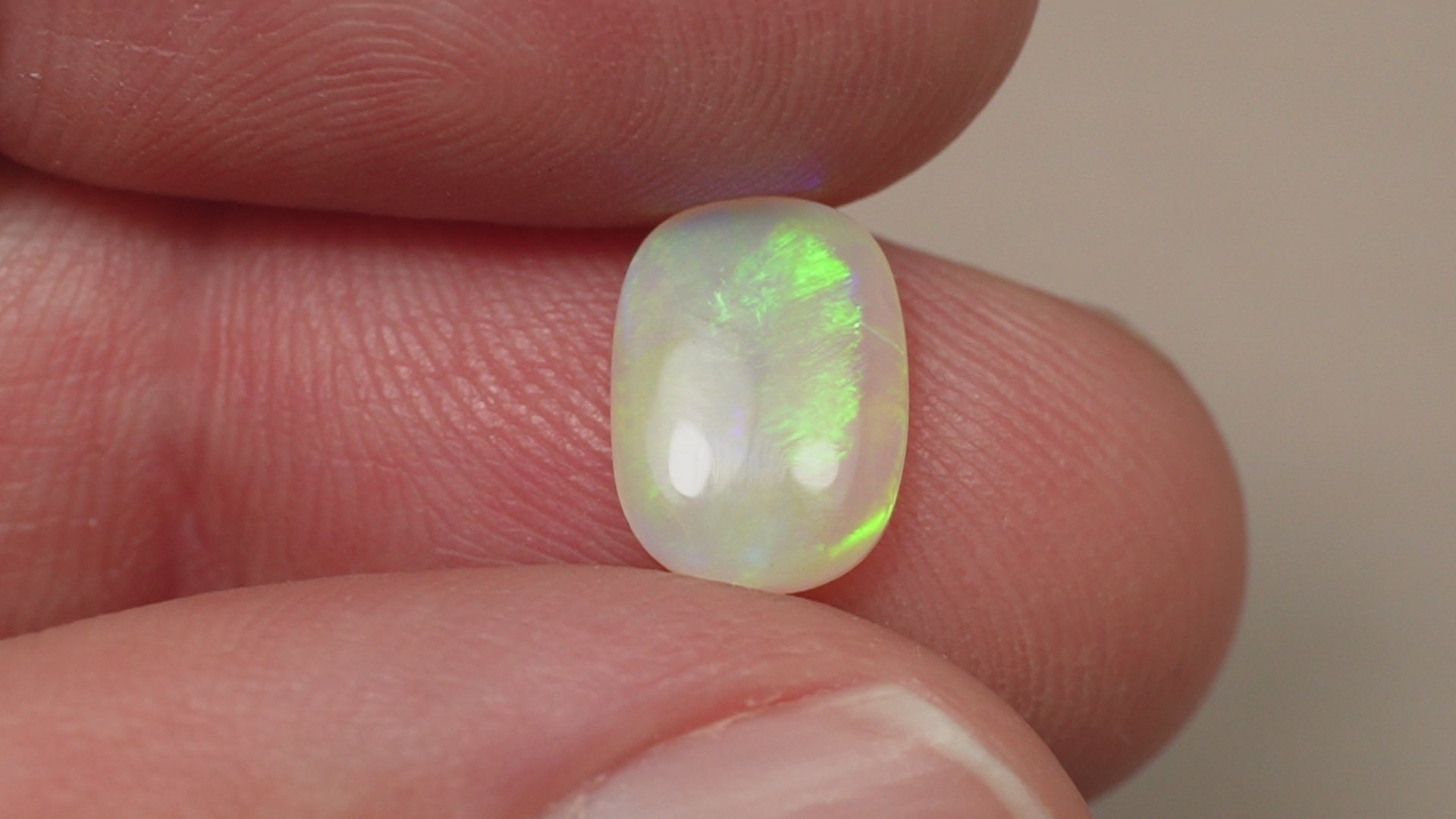 1. The photo's and video's are taken under 5500 Kelvin LED lights, this is the closest to natural daylight and gives a fair representation of the opal. Keep in mind that an opal may look different under different lightsources.